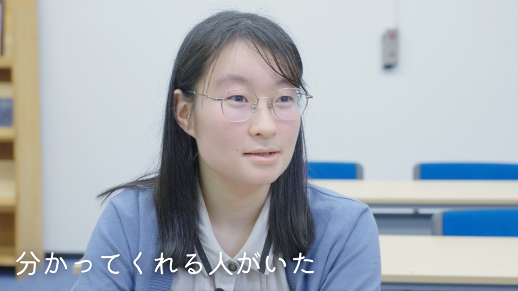 自分の「好き」を、どう表現したらいいのか分からなかったと話します。おおぞら高校で過ごす中で、周りの人との対話を通して、少しずつ言葉を探していきました。うまく言えなくても、途中で止まっても、最後まで聞いてくれる人がいました。そうした時間の積み重ねが、「好き」を言葉にすることへの自信につながっていきます。自分の気持ちを大切にしながら、表現することを選んだその「今」を記録した映像です。