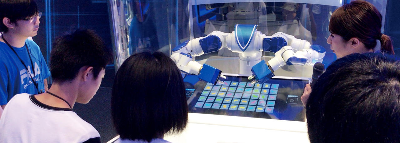 ロボットプログラミングを通じて、論理的に物事を考えるチカラ、多面的に物事を見るチカラ、たくさんの情報をつなぎ合わせるチカラ、他者に物事を表現するチカラ、そして何よりも、あきらめずにやりぬくチカラを身につけます。
